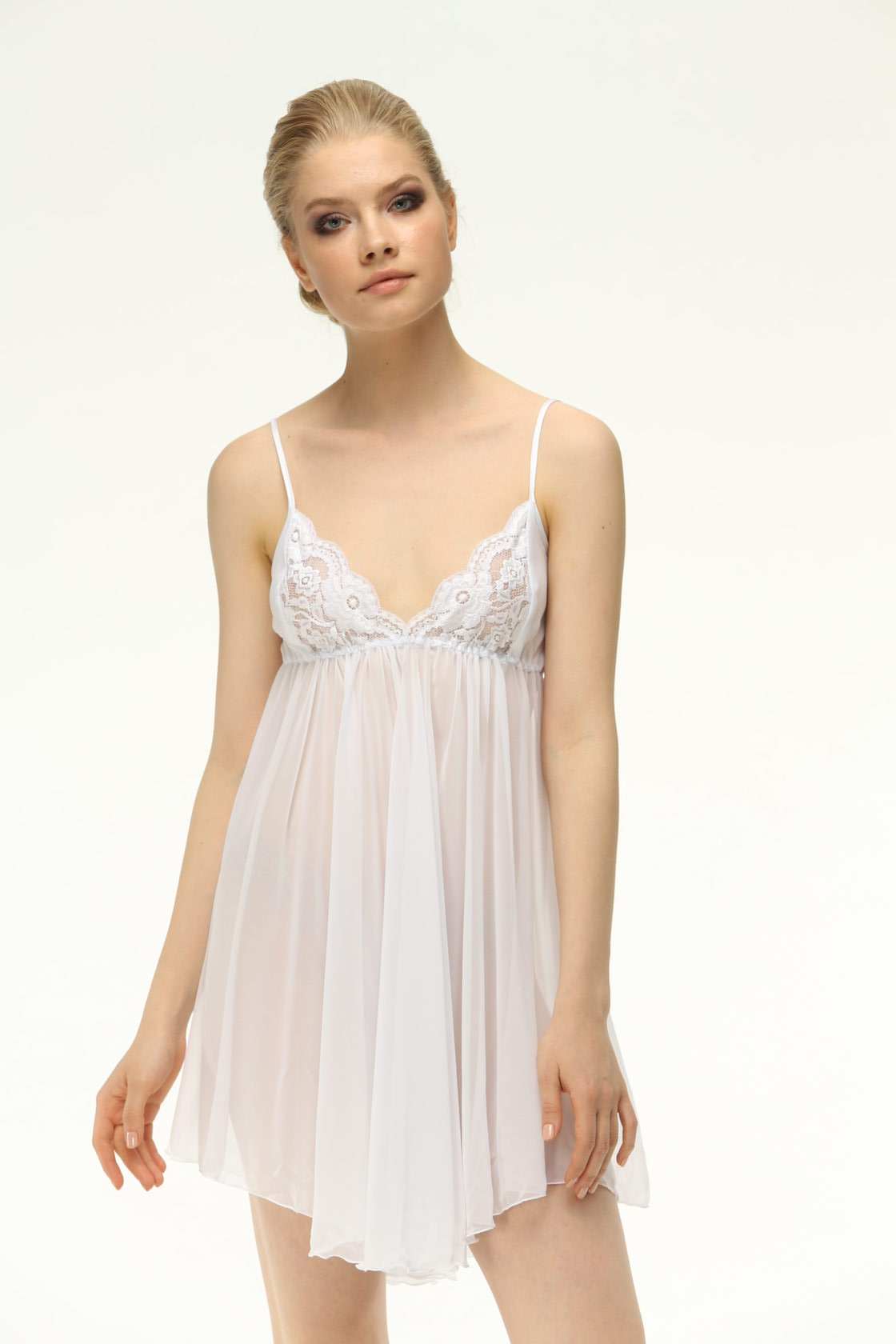 Сорочка из тонкого шифона с кружевным лифом