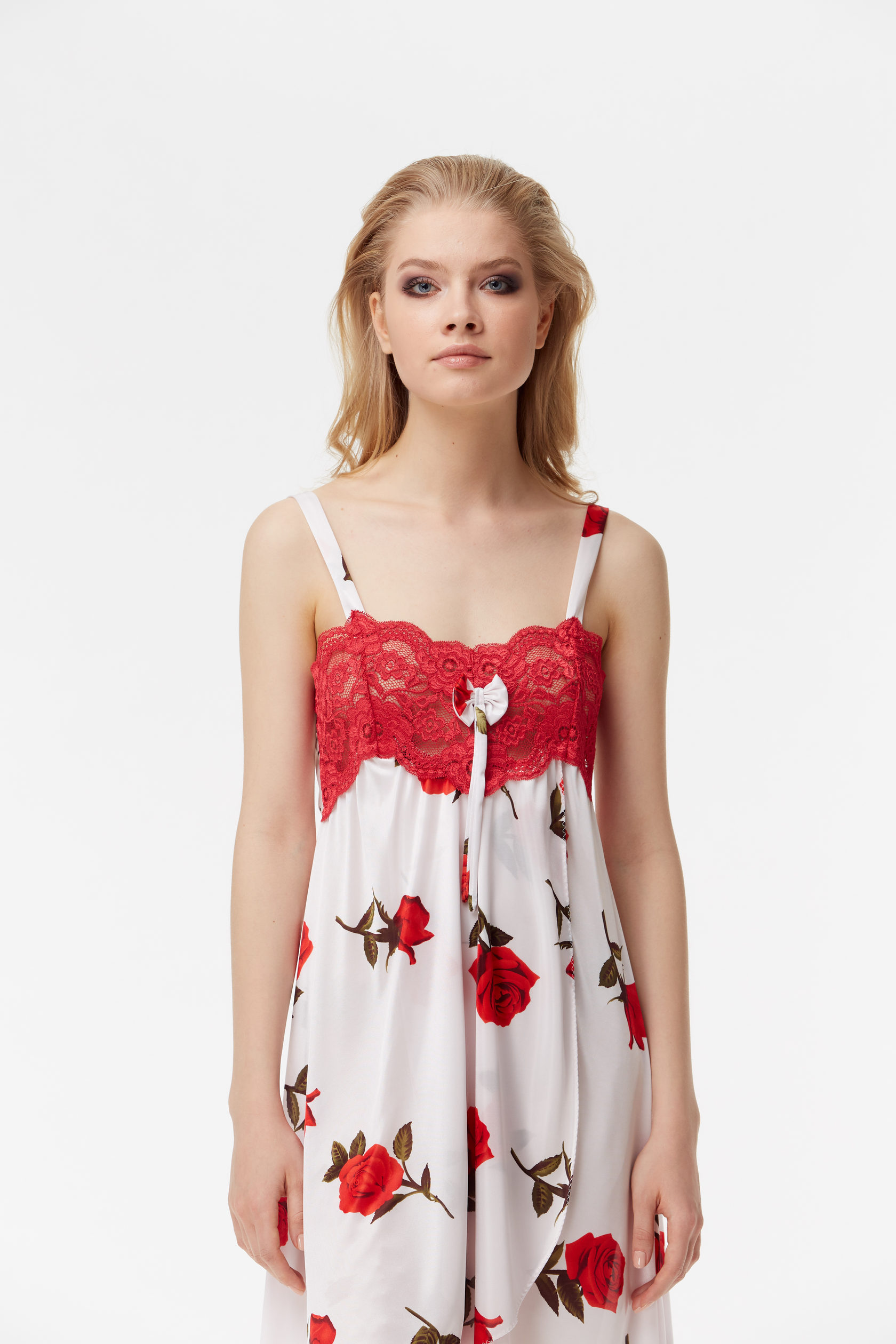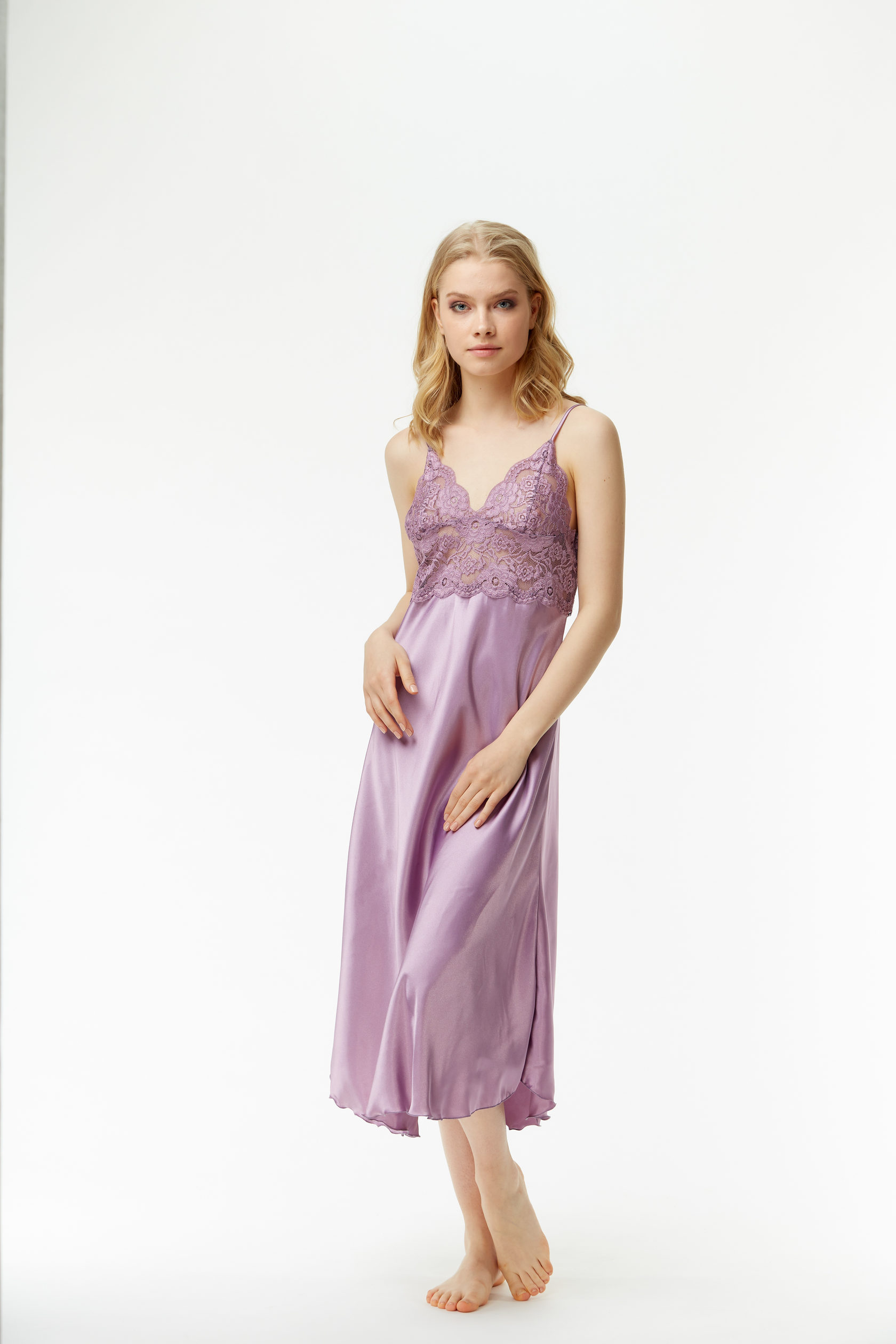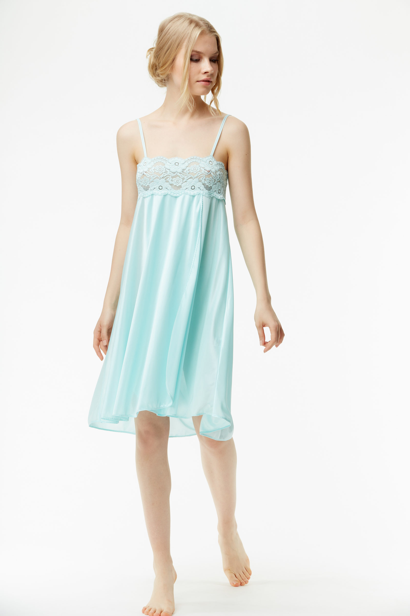 Сорочка из тонкого атласа с кружевной отделкой
